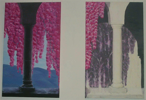 Mit kräftigen Farben und eher großformatig werden diese Bilder direkt auf mit Leinwand bespannte Keilrahmen aufgetragen.